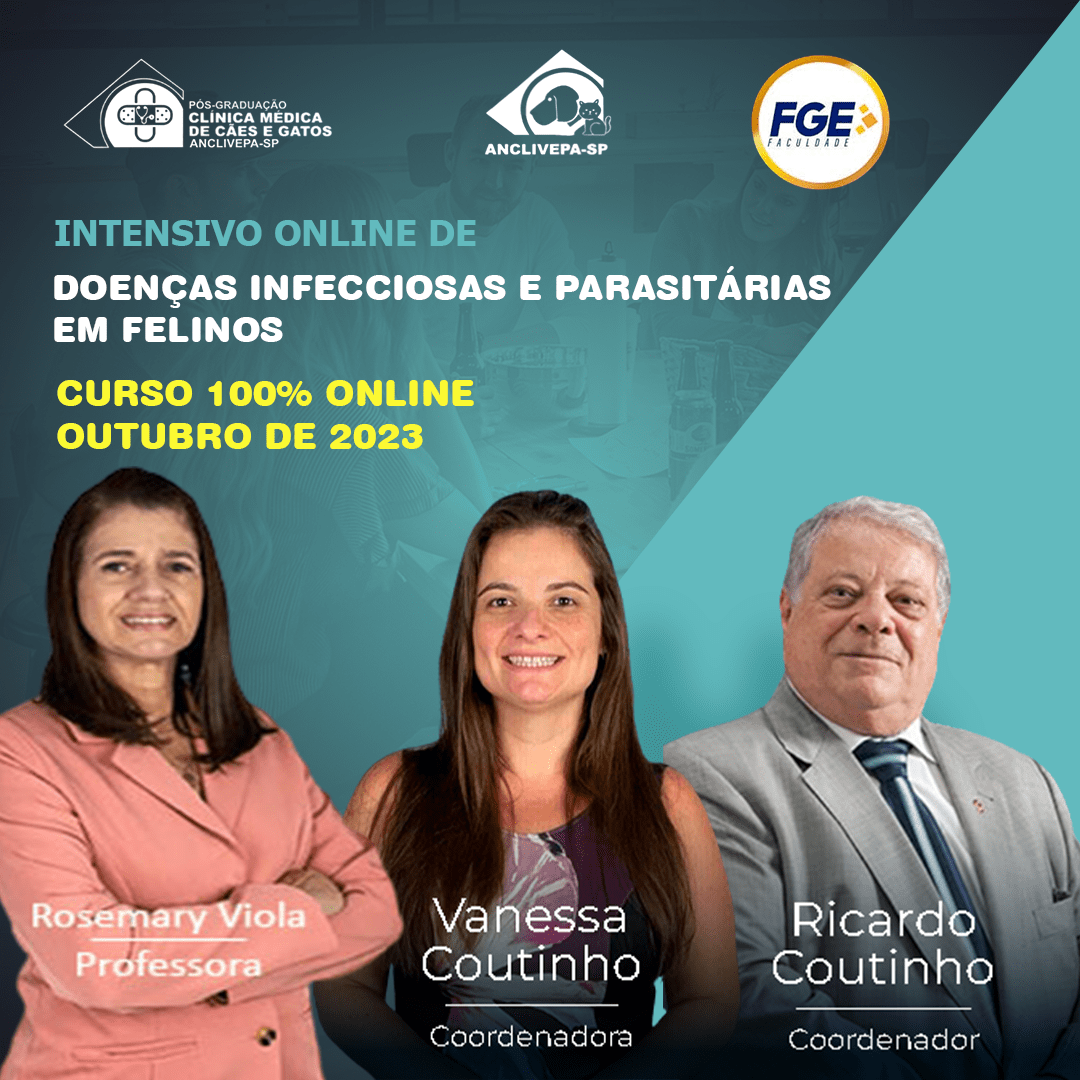 O curso 1 – Intensivo Online de Doenças Infecciosas e Parasitárias em Felinos tem carga horária de 33 horas e as aulas são ministradas por profissionais que são referência na área, abordando temas como Micoplasmose Hemotrópica, Retroviroses, Toxoplasmose, Doenças Infecciosas e Parasitárias da Pele e Orelhas, Diarréia Infecciosa, Leishmaniose e muito mais. O curso é destinado a profissionais que queiram aperfeiçoar seus conhecimentos nas doenças infecciosas e parasitárias que fazem parte do dia a dia na clínica dos profissionais que atendem felinos.