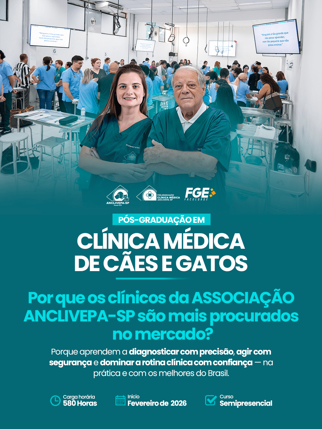 O curso 2- Especialização em Clínica Médica de Cães e Gatos da ANCLIVEPA-SP é voltado para profissionais da área de pequenos animais e médicos veterinários de outras áreas que desejam aprimorar seus conhecimentos e enriquecer seu atendimento.