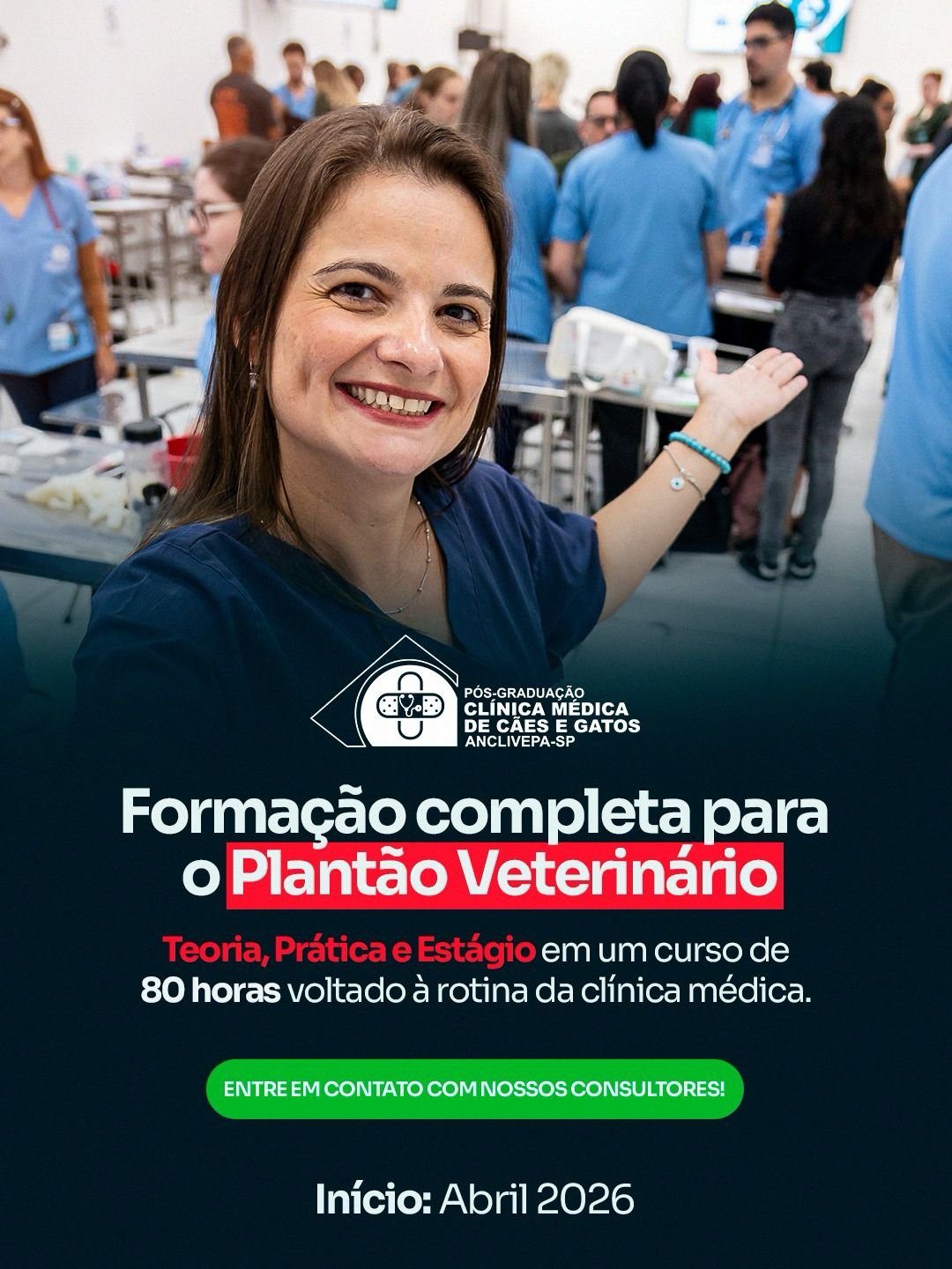 Disponibilizamos os melhores cursos para você se capacitar e aumentar seu aprendizado: além da Pós-Graduação em Clínica Médica de Cães e Gatos (com duração de 2 anos, direcionada para Médicos Veterinários), temos também diversos Cursos Intensivos na área de Clínica Médica (cursos de curta duração, voltados tanto para Médicos Veterinários, quanto para graduandos em Medicina Veterinária).